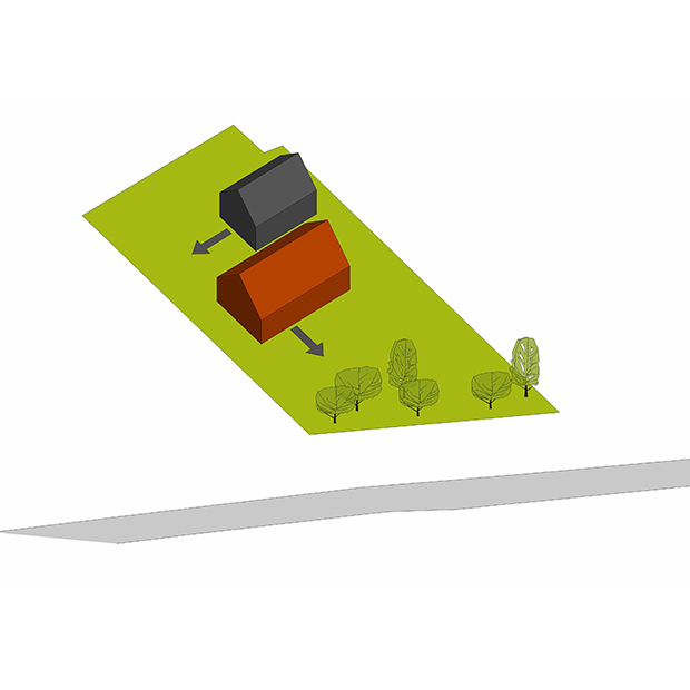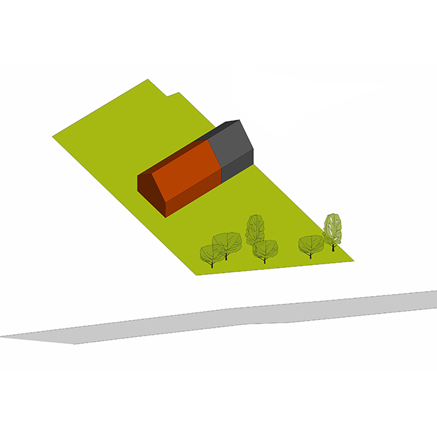Projektowany budynek przyjmuje formę odwróconej litery „Z” usytuowanej dłuższym bokiem w poprzek działki, zgodnie z nieprzekraczalną linią zabudowy. Zaprojektowano dwie wyraźnie bryły nawiązujące swoim charakterem do lokalnej architektury Warmińskiej, połączone rachitycznym łącznikiem.