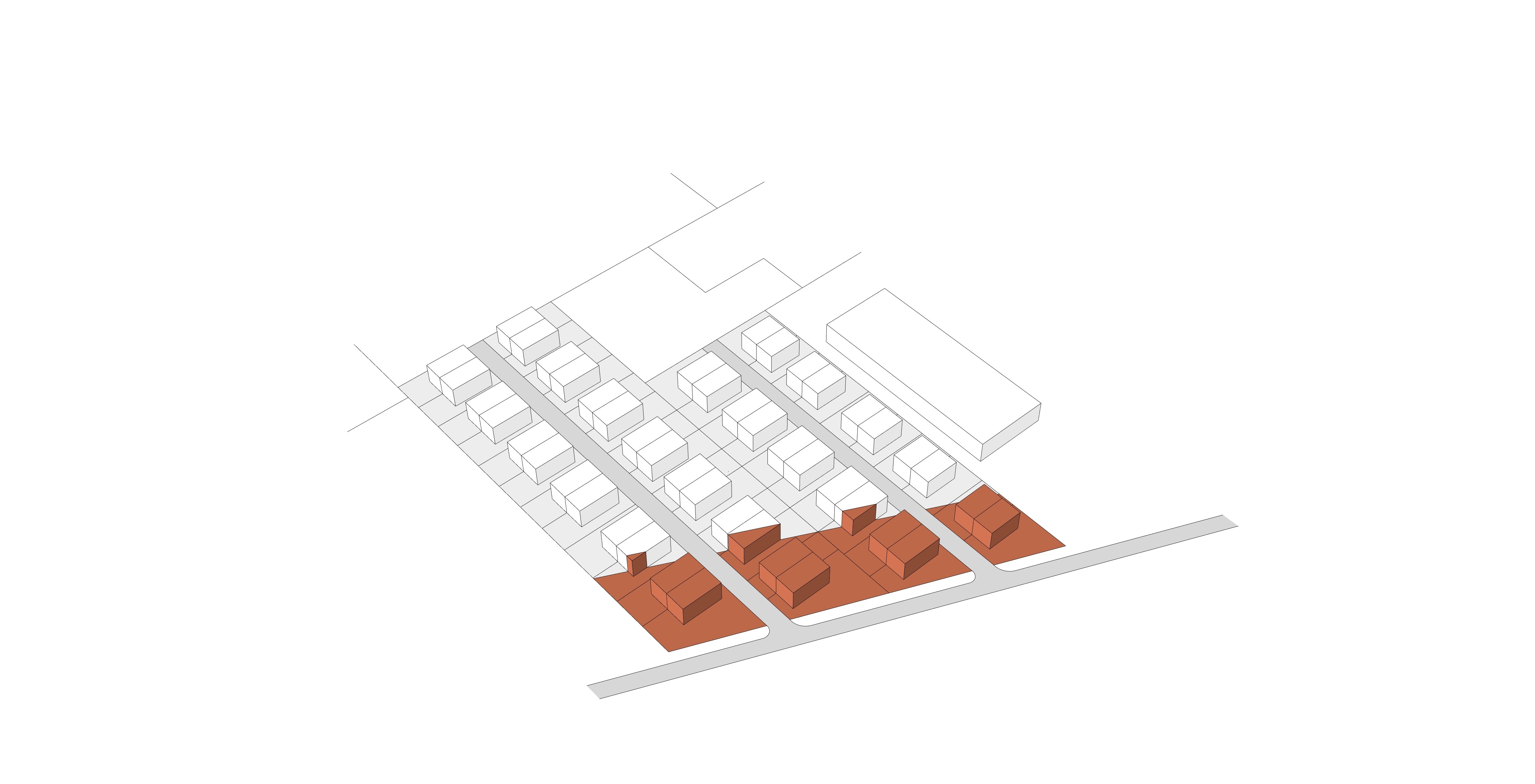 Element muru stał się również pretekstem do kształtowania różnych funkcji i przestrzeni- tworzy partery budynków, eleganckie wycofane strefy wejściowe, miejsca składowania odpadów, itp. Zróżnicowana linia ogrodzenia tworzy uskoki i przejścia i kadry dla osi widokowych. Wykorzystanie tego materiału oprócz tego, że stanowi elegancki detal wykończeniowy i podwyższa standard inwestycji, nawiązuje też do industrialnego charakteru otoczenia i jest ukłonem w kierunku historii i ducha miejsca.