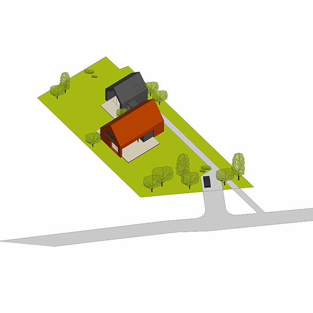 Projektowany budynek przyjmuje formę odwróconej litery „Z” usytuowanej dłuższym bokiem w poprzek działki, zgodnie z nieprzekraczalną linią zabudowy. Zaprojektowano dwie wyraźnie bryły nawiązujące swoim charakterem do lokalnej architektury Warmińskiej, połączone rachitycznym łącznikiem.